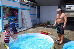 大磯長州家前で子供と遊ぶ長州力